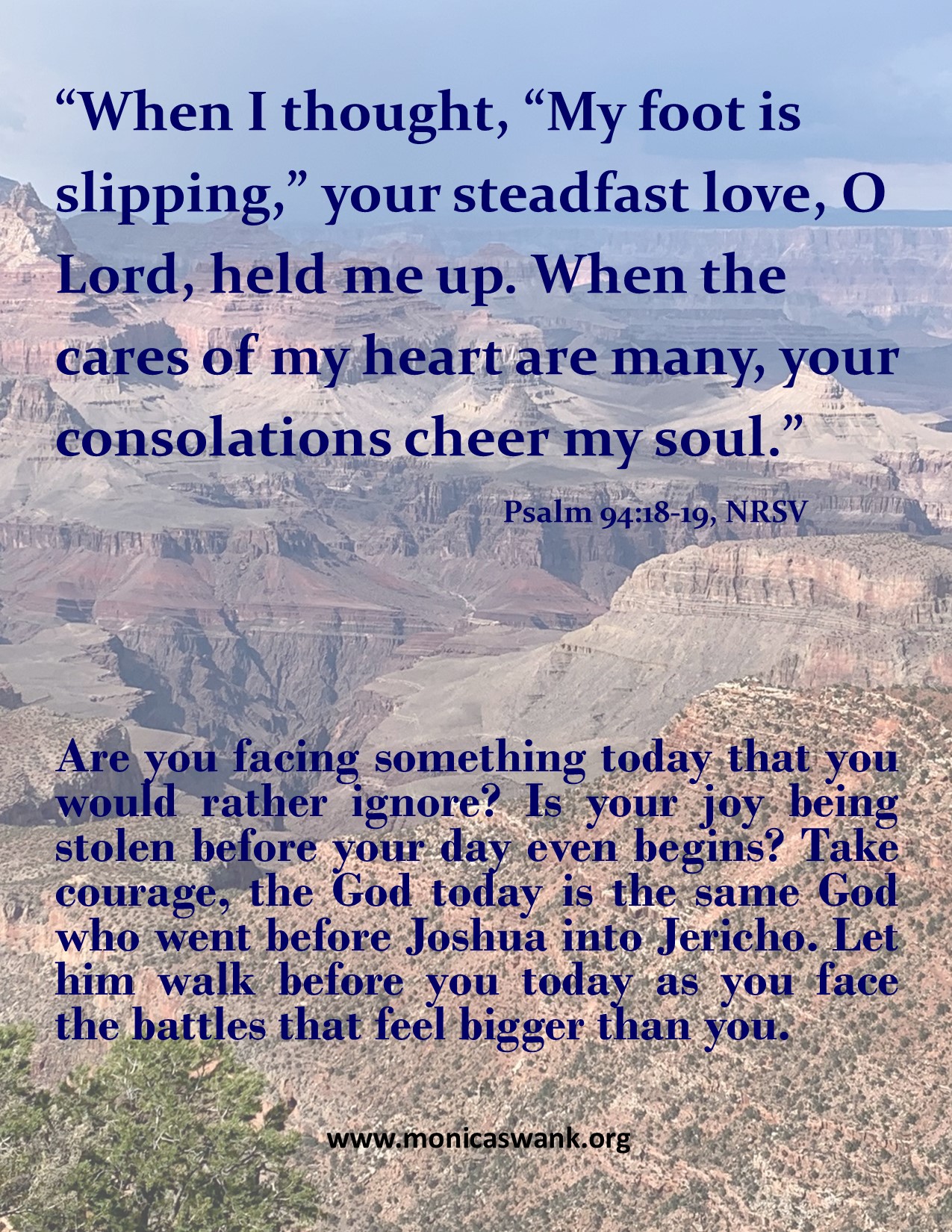 Each day presents itself as one with potential needs. We might wake ready, filled with a sense of joy as we enter into the events of the day only to find ourselves facing draining challenges. Jesus promises that even in those moments, if we have placed our trust in him that we will find rest, food for our souls, and restoration.