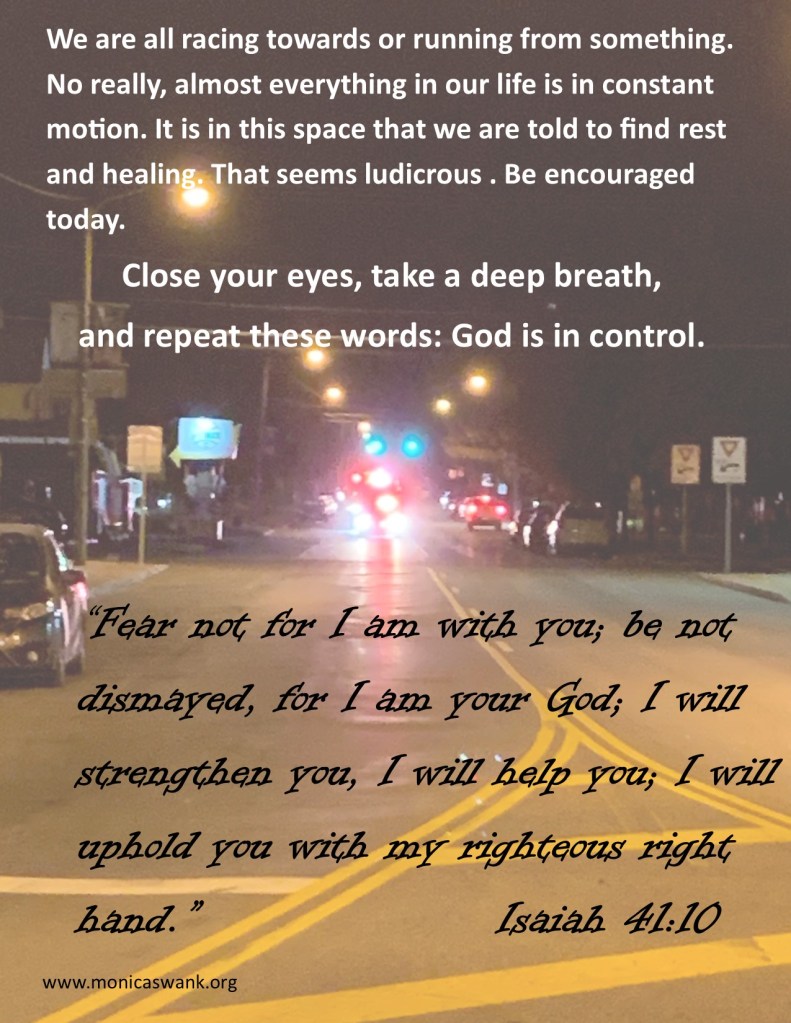 “Can you hear Christ calling you? I know that you may be weary and breathing may be hard for you. You may be near collapse, but keep your head up, Christ is cheering you on! Better yet, Christ is straightening you on the path. He is giving you balance. Let him take away the cramping and let him fill your emptiness. Press on to the finish line.”